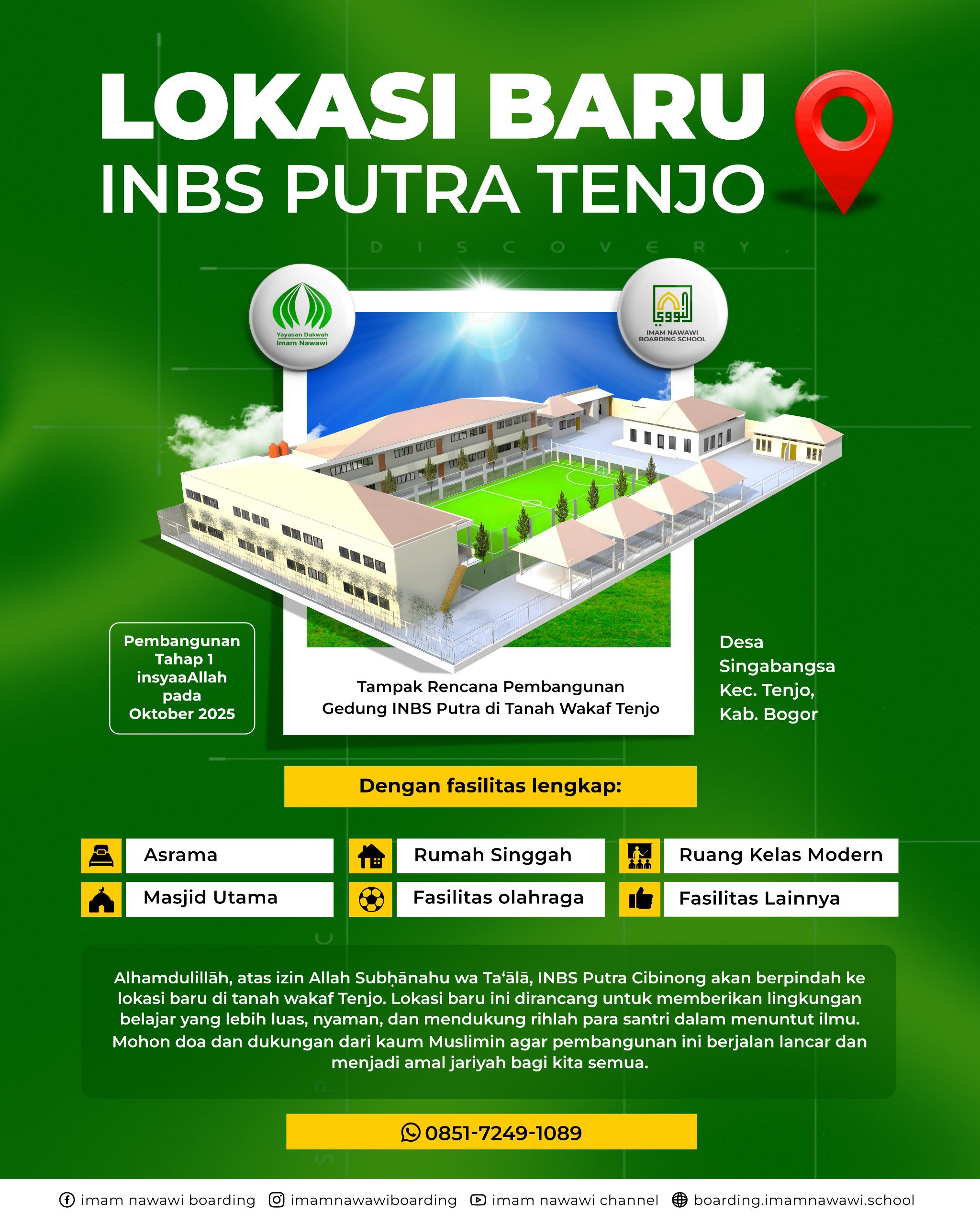 PENERIMAAN SANTRI & SANTRIWATI BARU DAN PINDAHAN IMAM NAWAWI BOARDING SCHOOL T.A. 2026/2027 “Telah diangkat pena dari tiga golongan: dari …