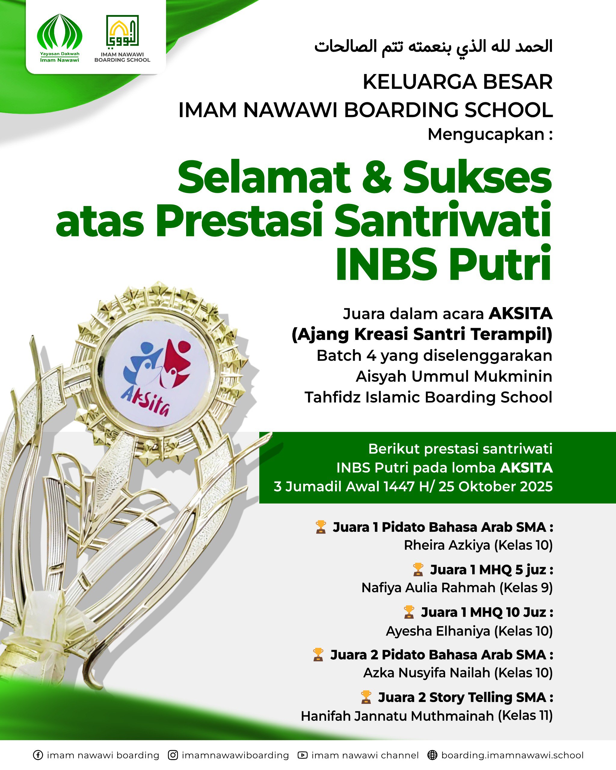 Santriwati INBS Putri Raih Prestasi Gemilang di Ajang AKSITA 2025 Bogor, 25 Oktober 2025 — Alhamdulillahilladzi bini’matihi tatimmush …