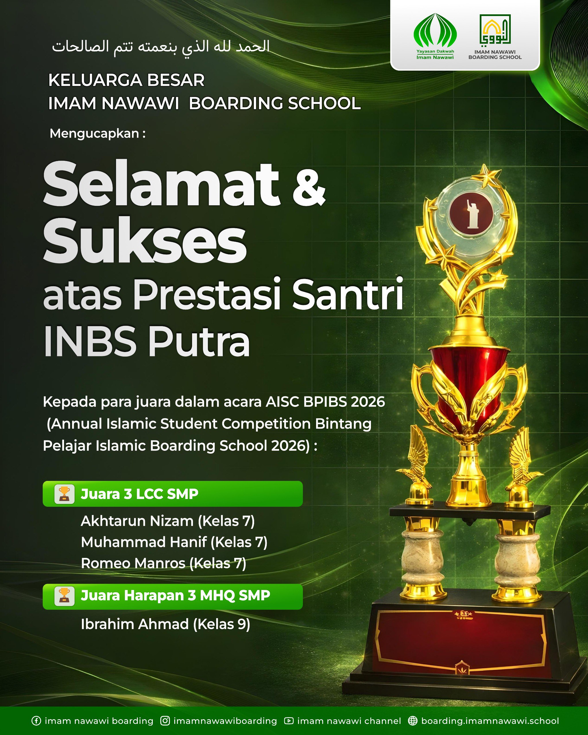 PENERIMAAN SANTRI & SANTRIWATI BARU DAN PINDAHAN IMAM NAWAWI BOARDING SCHOOL T.A. 2026/2027
