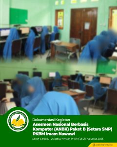 Bogor – Para santriwati Imam Nawawi Boarding School (INBS) Putri dari jenjang kelas 8 SMP dan kelas 11 SMA telah selesai mengikuti rangkaian Asesmen Nasional Berbasis Komputer (ANBK) yang dilaksanakan pada Rabu-Kamis (12-13 Shafar 1447H / 6-7 Agustus 2025) untuk Paket C (Setara 11 SMA) dan pada Senin-Selasa, 1-2 Rabiul Awwal 1447H/ 25-26 Agustus 2025 untuk Paket B (Setara 8 SMP). Keduanya dilaksanakan di di Laboratorium Komputer INBS Putri Ciomas.